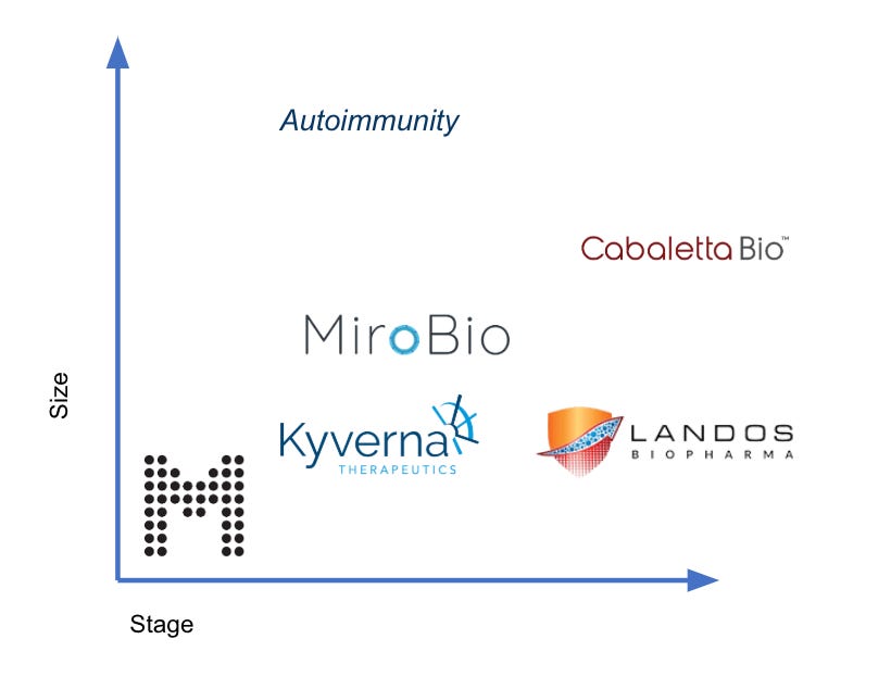 Autoimmunity is a large problem - hundreds of millions of people and market sizes in the tens of billions. So far, the cutting edge treatment suffers from a hammer looking for a nail syndrome - Humira. Transformative therapies pursuing new targets or using new modalities are needed. An interesting premise is to identify and target self-antigens in each disease subtype to develop therapies for each disorder. Moreover, management tools like Octave Bioscience can be transformative for patients.