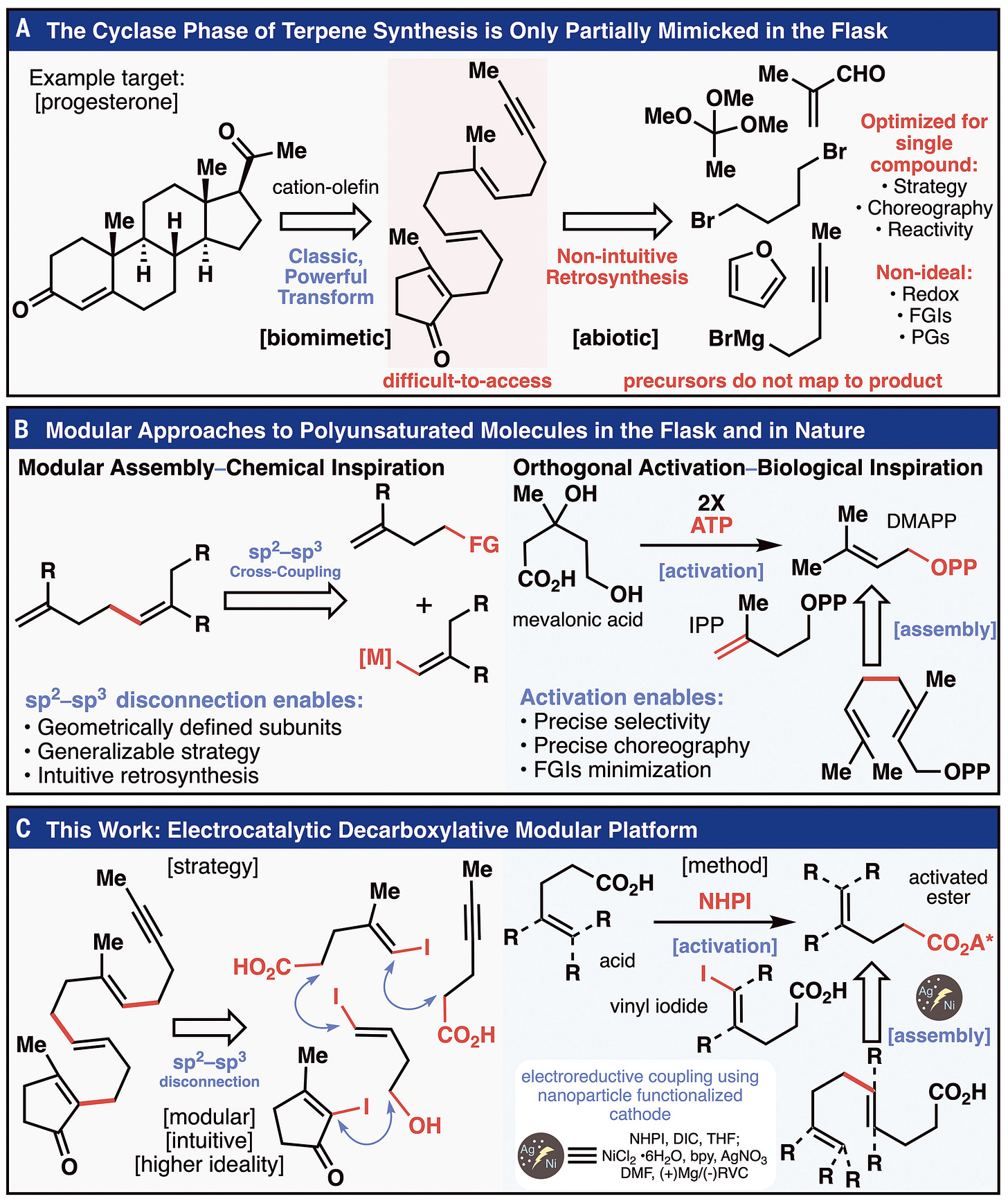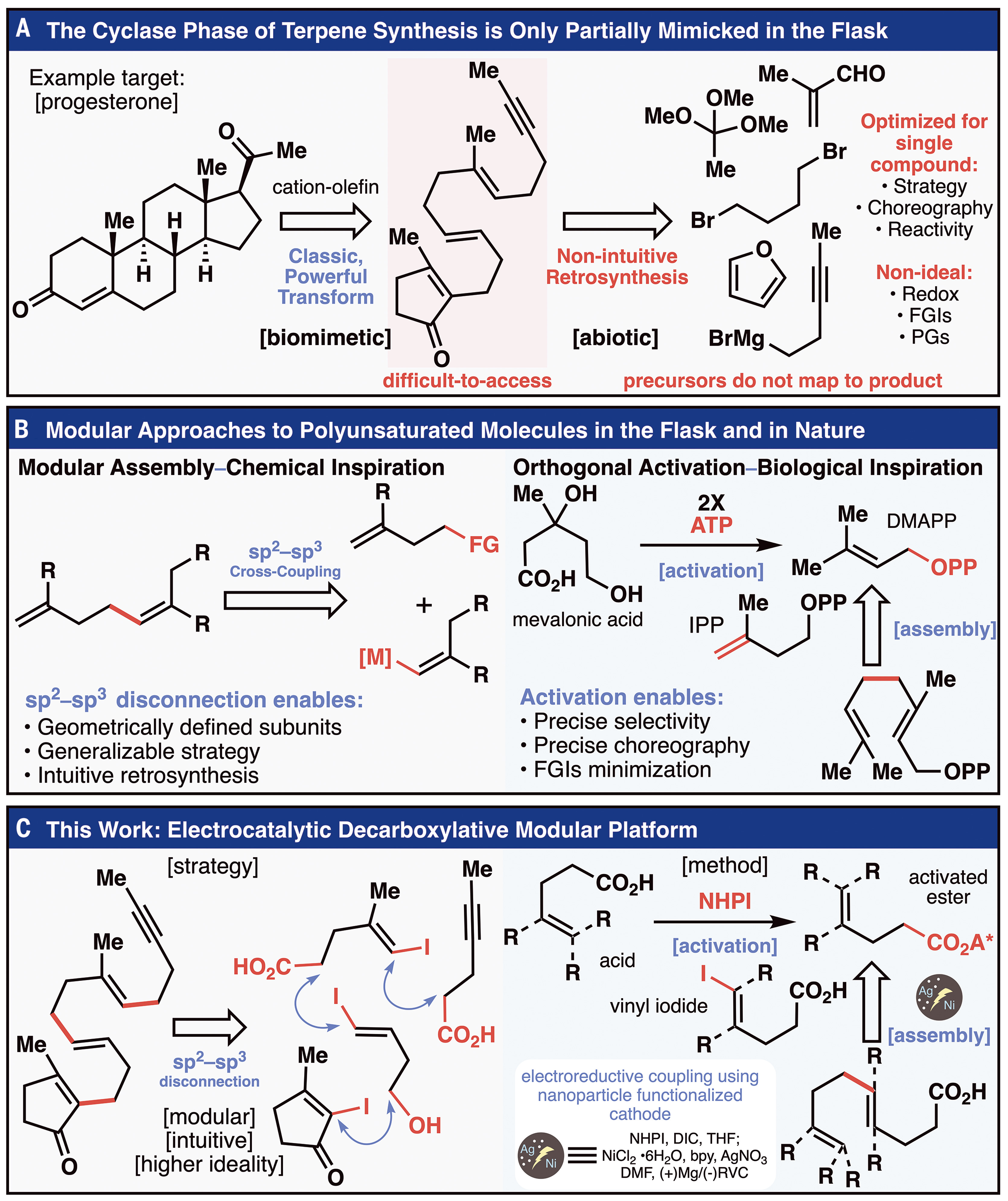 They discovered that nickel electrocatalysis coupled with silver nanoparticle-modified electrodes enables decarboxylative cross-coupling of carboxylic acids and vinyl halides. This method is mild, functional group tolerant, andGeometry controlling. The new methodology was used in concise syntheses of 13 terpenes including polyene cyclization precursors and fragrances like nerolidol. The reactions could be conducted on large scale in a flow reactor.